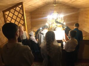 Многие воспитанники воскресной школы пришли на богослужение вместе с родителями, держались стойко, не спали, следили по богослужебным книгам и причащались Святых Христовых Таин.