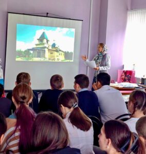 Вниманию собравшихся был представлен доклад и презентация по теме «Путешествие по храму. Путешествие по лестнице добродетелей», где ребята познакомились со строение храма, с историей Скорбященского храма в их селе, с историей образа Пресвятой Богородицы «Всех скорбящих радосте» и таинствами, совершаемыми в храме.