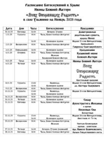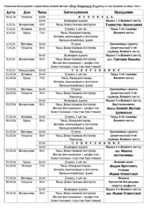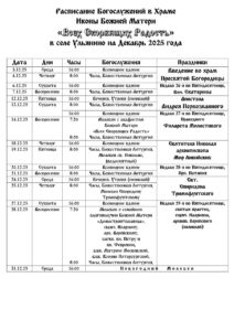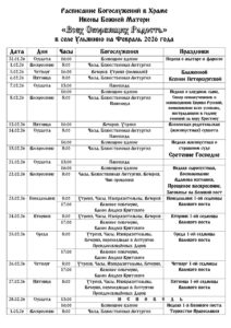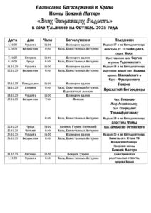 Расписание богослужений В храме проводятся богослужения в воскресные и праздничные дни. Храм открыт с 9.00-13.00